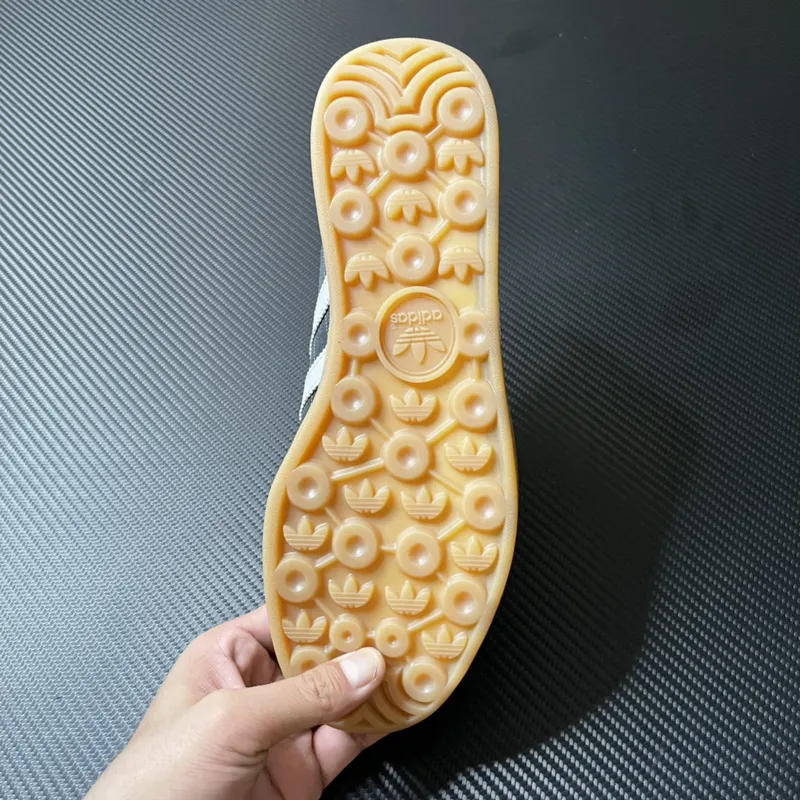 Com uma entressola em borracha de goma translúcida, o tênis não só proporciona flexibilidade e amortecimento, mas também confere um toque vintage e autêntico, conectando o tênis à sua rica história e ao seu status de ícone cultural. A sola de borracha de goma, com seu padrão de tração clássico, oferece aderência e durabilidade, garantindo que cada passo seja firme e estiloso.