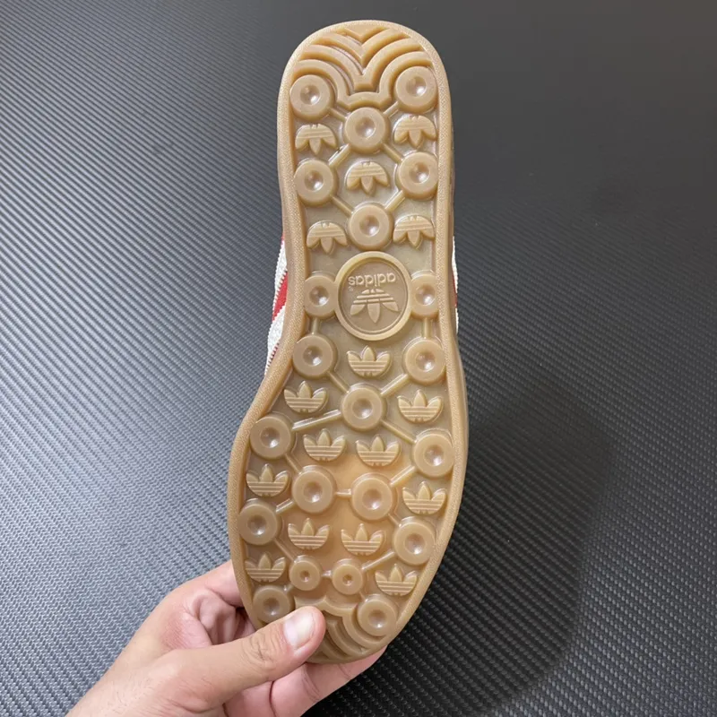 Os detalhes são onde a personalidade do “Scarlet Gum” realmente brilha: a língua e o forro interno em tons complementares garantem conforto e um acabamento impecável. Os cadarços em vermelho escarlate se integram perfeitamente ao design, reforçando a intensidade da cor. A entressola em borracha de goma translúcida não só proporciona flexibilidade e amortecimento, mas também confere um toque vintage e autêntico, conectando o tênis à sua rica história e ao seu status de ícone cultural.