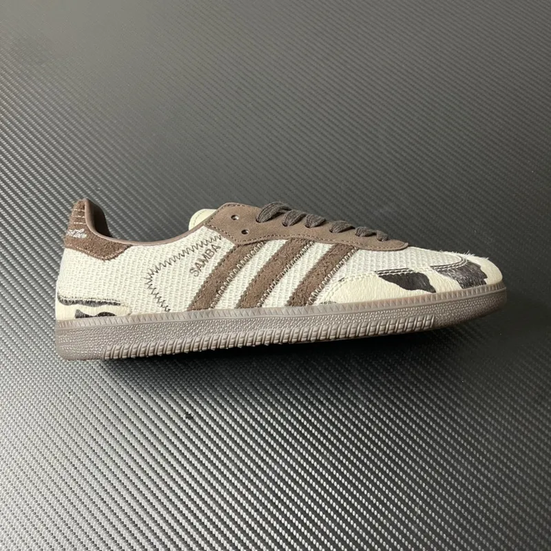 O Adidas Samba “Notitle Cow Print” é mais do que um calçado; é um convite para vestir a história, a ousadia e o espírito de uma silhueta que se tornou um símbolo de estilo atemporal. É a fusão perfeita entre a herança esportiva e a moda contemporânea, feito para aqueles que vivem com paixão e um estilo que conta uma história de autenticidade e originalidade.