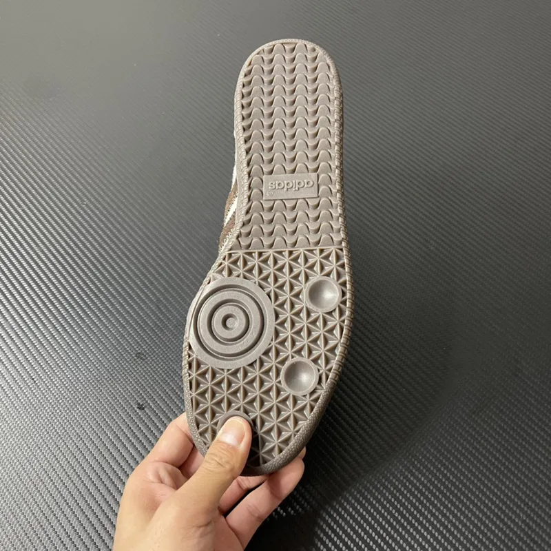 Os detalhes são onde a magia acontece e a história ganha vida: a biqueira em T de camurça e a língua longa, características distintivas do Samba, mantêm a fidelidade ao design original. O forro interno têxtil e a palmilha proporcionam conforto superior para o uso diário. A entressola em borracha de goma não só proporciona flexibilidade e amortecimento, mas também adiciona um toque vintage e autêntico. A sola de borracha de goma, com seu padrão de tração clássico, não só oferece aderência e durabilidade, mas também completa a narrativa visual do tênis, conectando-o à sua herança esportiva e ao seu status de ícone cultural.