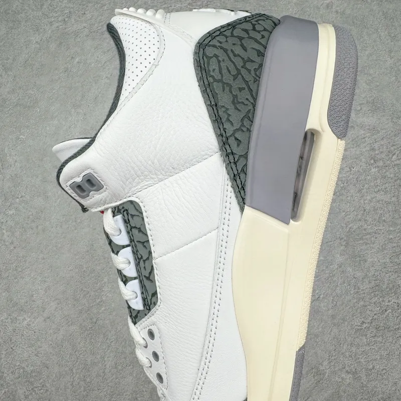 O Air Jordan 3 “Cement Grey” resgata a essência clássica da silhueta criada por Tinker Hatfield e a atualiza com uma paleta refinada. O couro branco premium contrasta com perfeição com os painéis em Elephant Print cinza-cimento, criando uma estética sóbria, mas poderosa. A entressola em tom off-white e os toques em cinza puro reforçam a sensação de autenticidade e bom gosto. Mais do que um tênis, esse modelo representa a convergência entre a herança do basquete e o streetwear moderno — um símbolo de estilo para quem valoriza história, design e autenticidade em cada passo.