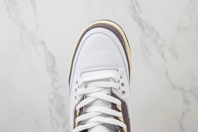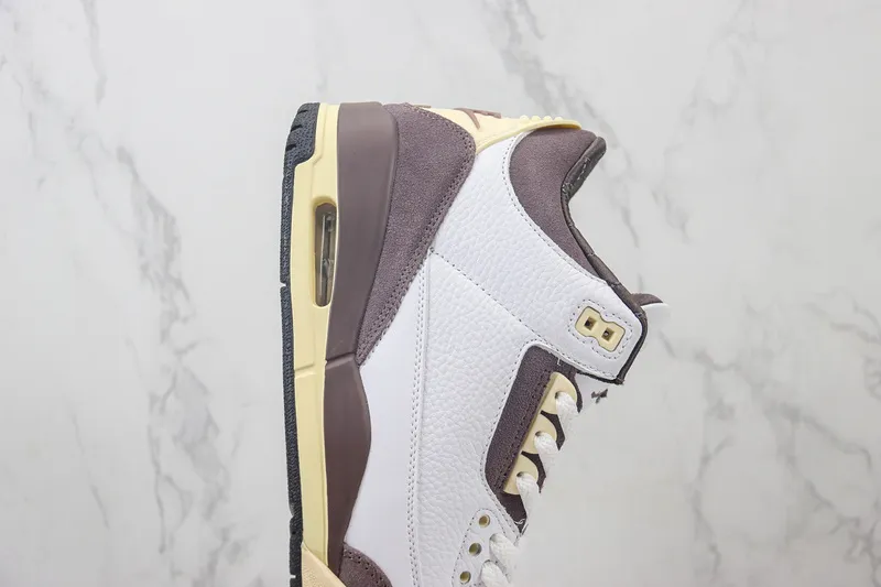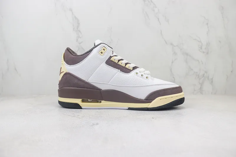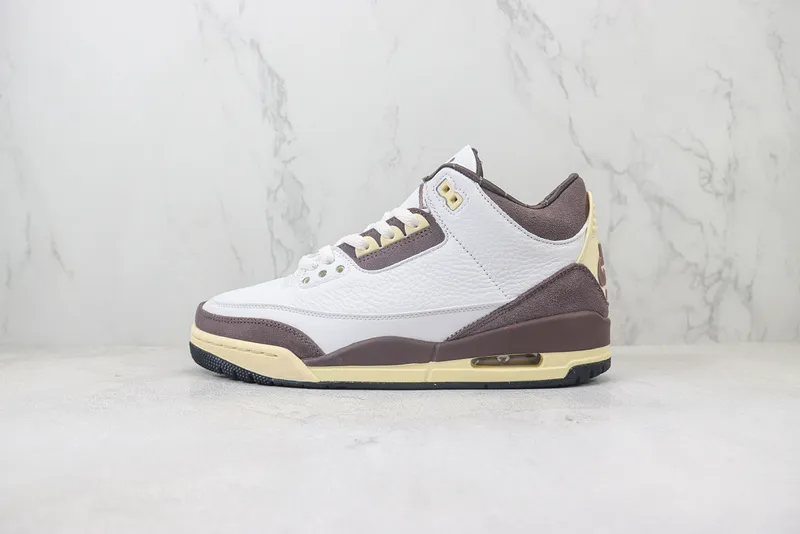 O Air Jordan 3 Retro SP x A Ma Maniére “Raised by Women” une a herança icônica da Jordan Brand ao olhar refinado da boutique de Atlanta. Com um cabedal em couro premium branco, detalhes em suede roxo-acastanhado e toques off-white envelhecido, o par traduz sofisticação atemporal. Cada elemento foi pensado para representar força, feminilidade e autenticidade, celebrando o papel essencial das mulheres na cultura sneaker e na sociedade. É mais que um tênis — é uma declaração silenciosa de estilo e respeito.
