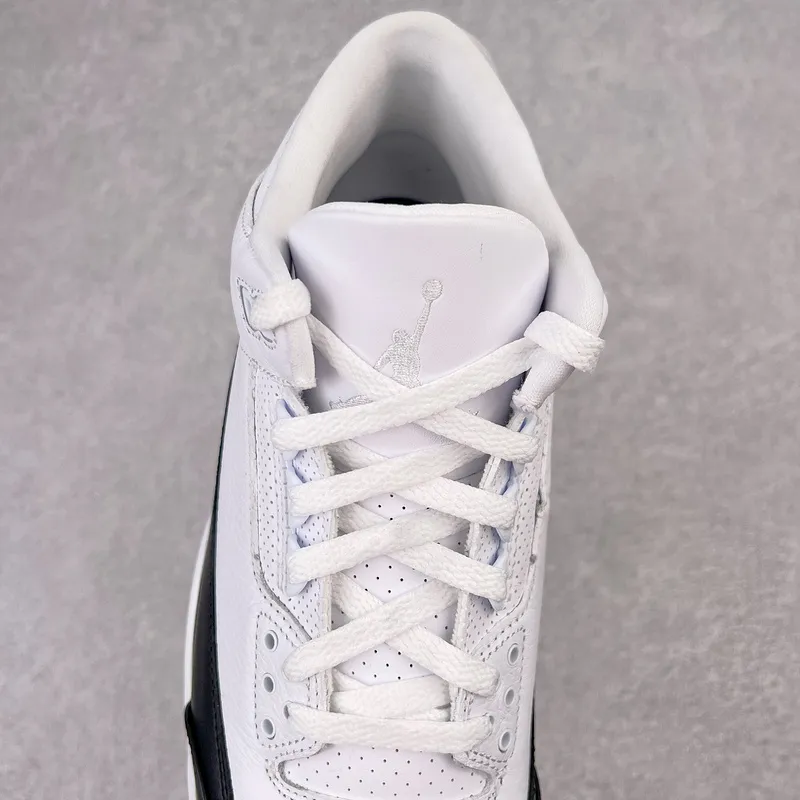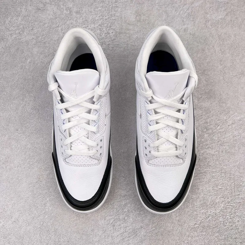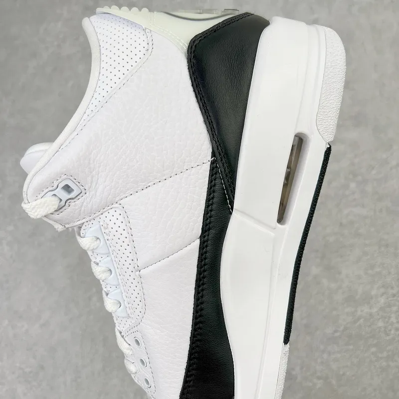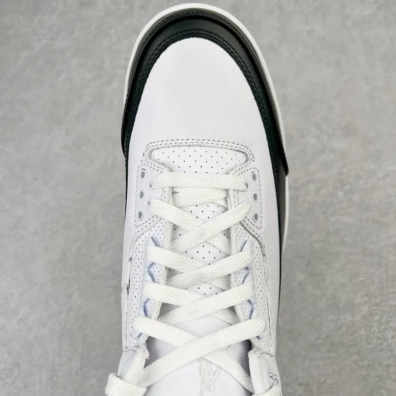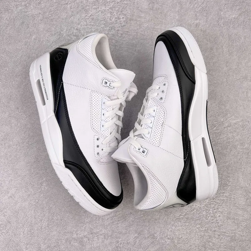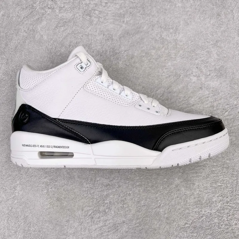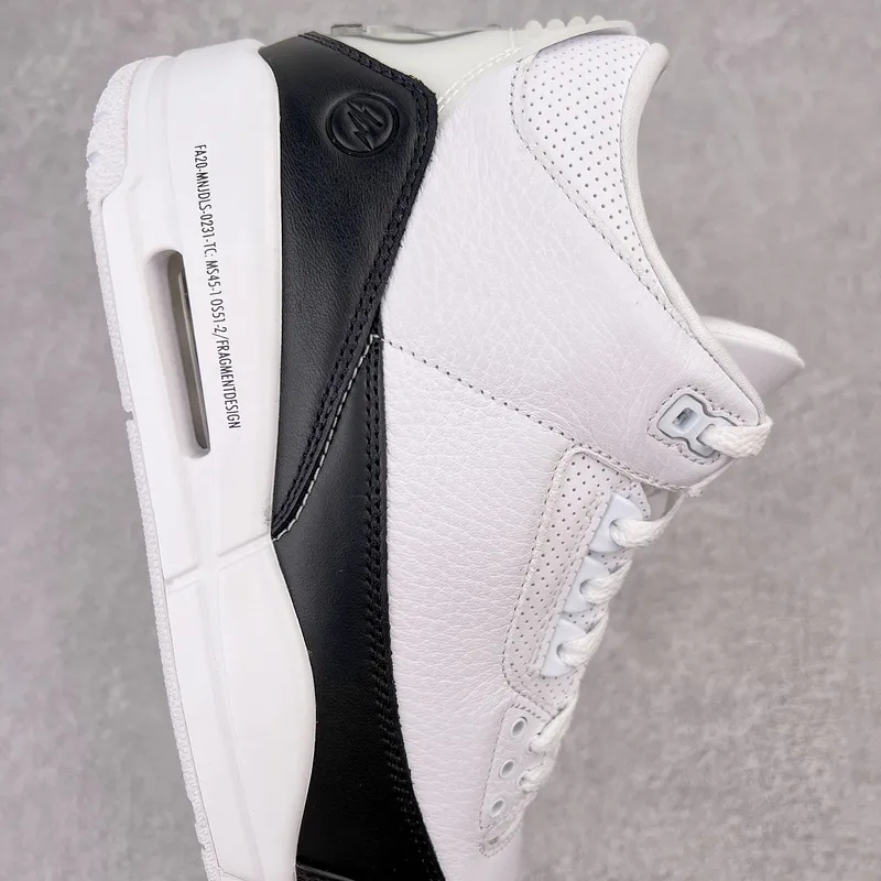 O Air Jordan 3 x Fragment Design “White/Black” é o resultado de uma colaboração entre duas potências: a herança imortal da Jordan Brand e a estética refinada da Fragment Design, comandada por Hiroshi Fujiwara. Esta versão traz uma construção elegante em couro premium branco com sobreposições pretas em couro liso, substituindo o tradicional Elephant Print por linhas limpas e precisas. Detalhes técnicos como o código de fabricação estampado na entressola e o icônico logotipo do raio Fragment no calcanhar adicionam um toque de exclusividade silenciosa — para quem entende de verdade. A silhueta clássica do AJ3 se transforma aqui em uma obra de arte minimalista que comunica sofisticação, discrição e autenticidade.