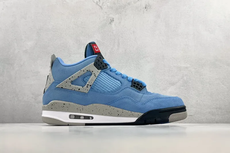 O Air Jordan 4 “University Blue” é mais que um sneaker — é uma peça de identidade. Com um cabedal em suede premium na tonalidade azul Carolina, ele evoca instantaneamente a energia vibrante das quadras universitárias onde Michael Jordan fez história. Cada detalhe, do painel salpicado em cinza “Cement” à língua com patch têxtil costurado, carrega a tradição da Jordan Brand com um toque moderno e ousado. Não é só sobre estilo, é sobre atitude.