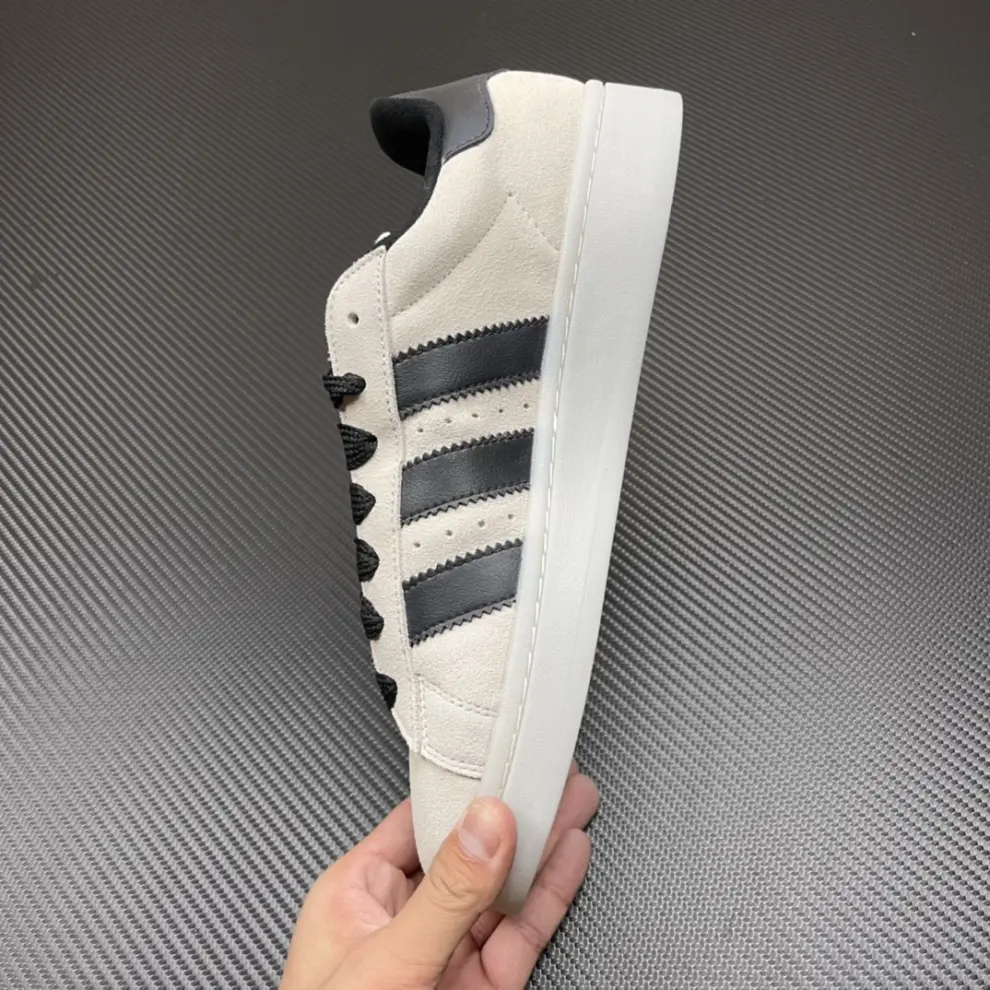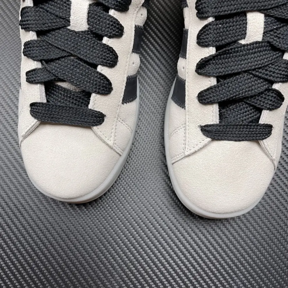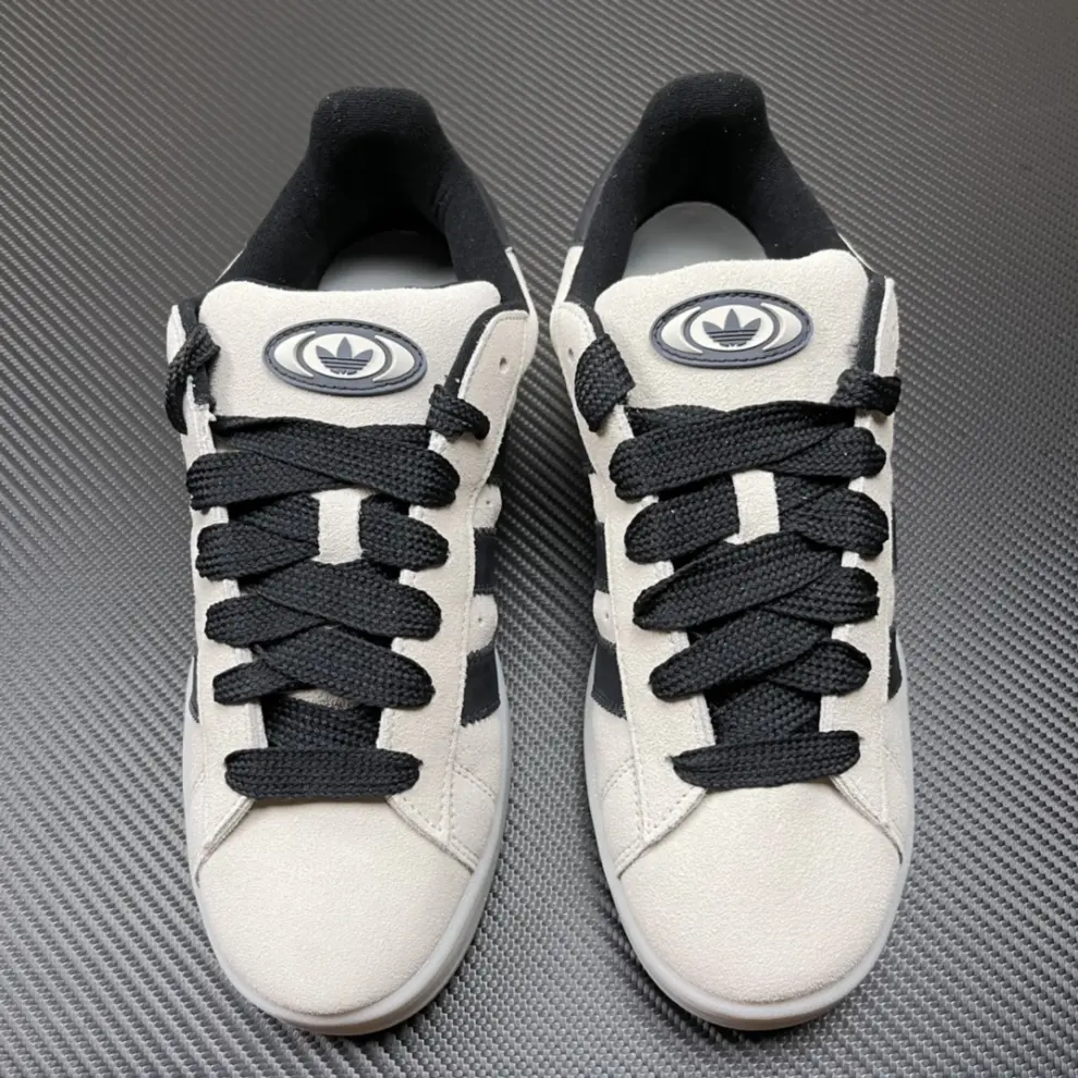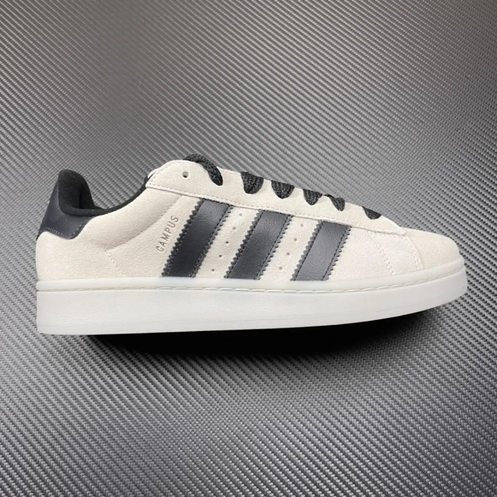 O Campus 00s “Aluminium” combina a leveza do bege com a força do preto em uma estética urbana e refinada. O cabedal em camurça clara transmite suavidade, enquanto as três listras pretas e o calcanhar escuro criam um contraste marcante e cheio de atitude. A silhueta inspirada no skate dos anos 2000 traz proporções robustas, com sola em borracha natural que garante conforto e uma pegada retrô autêntica. Os cadarços pretos reforçam a personalidade do modelo, completando o visual com equilíbrio e presença. É o sneaker para quem valoriza o contraste sutil, o clássico reinventado e a liberdade de se expressar sem excessos. Um ícone moderno — discreto na forma, poderoso na essência.