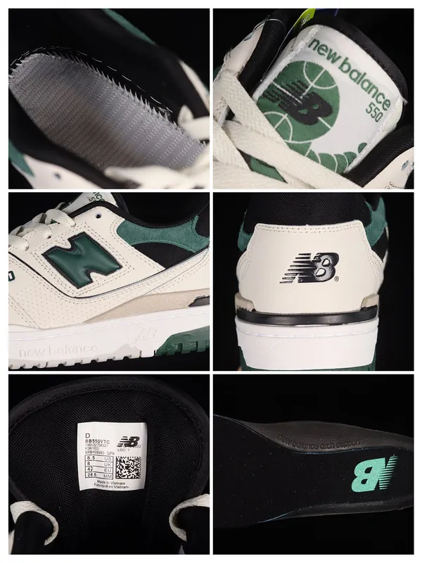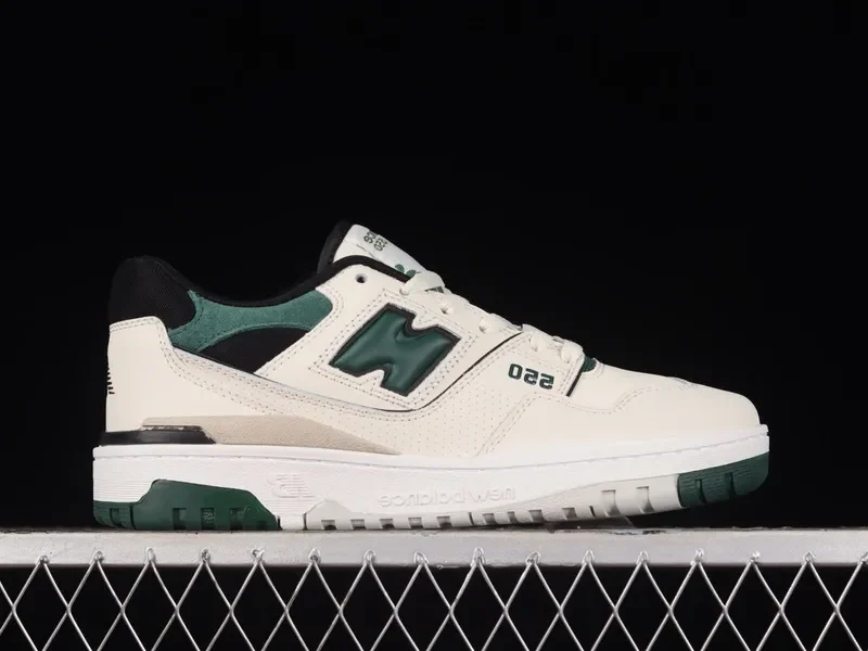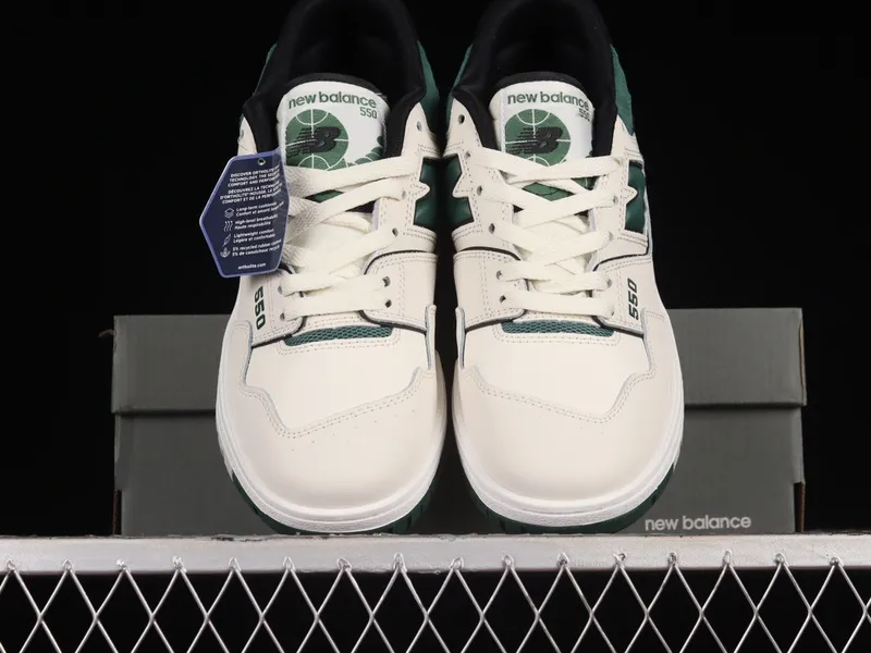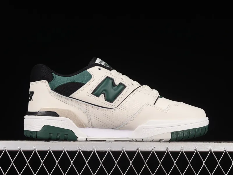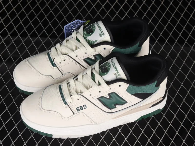 O New Balance 550 “Sea Salt Pine Green” combina o visual clássico dos anos 80 com cores modernas e elegantes, ideal para quem valoriza autenticidade nos detalhes. O cabedal em couro “sea salt” (marfim claro) recebe sobreposições perfuradas, enquanto o verde pinho no logo, solado e colarinho adiciona profundidade e contraste. A presença do preto no calcanhar e língua reforça o ar urbano e versátil do modelo, criando uma harmonia visual robusta e refinada. Um par que une o charme vintage à estética contemporânea — perfeito para elevar o visual sem abrir mão do conforto e da história da New Balance.