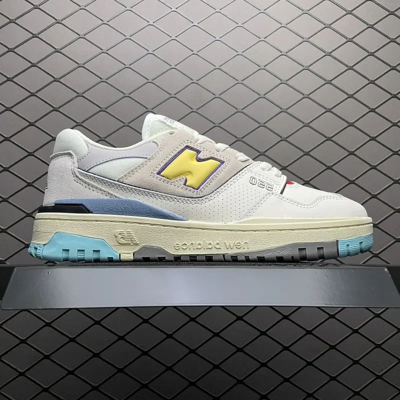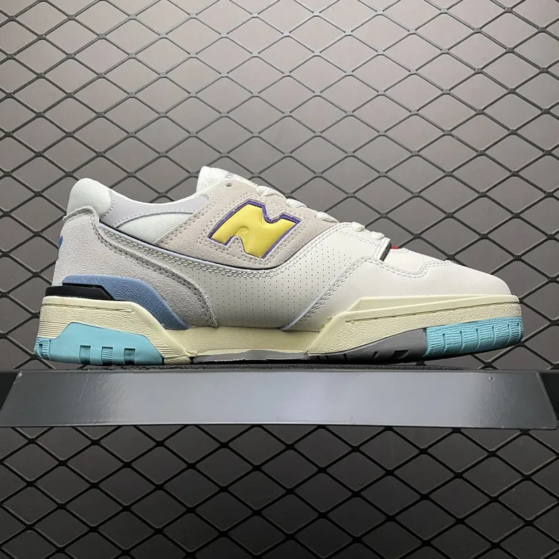 O New Balance 550 “Sea Salt” entrega uma combinação inusitada de tons pastel que transforma a silhueta tradicional em uma peça moderna, criativa e cheia de atitude — perfeita para quem busca se destacar sem abrir mão da elegância casual. O cabedal mistura couro branco perfurado e camurça cinza-claro, criando uma base neutra que valoriza os detalhes: o logo “N” em amarelo vibrante com contorno lilás adiciona um ponto de cor inesperado e expressivo, enquanto a entressola em tom creme harmoniza com o solado em azul céu e preto, reforçando o visual urbano contemporâneo. Ideal para compor desde looks minimalistas até composições mais fashionistas, o 550 “Sea Salt” reafirma o DNA da New Balance ao unir história, inovação e estilo em um só modelo.