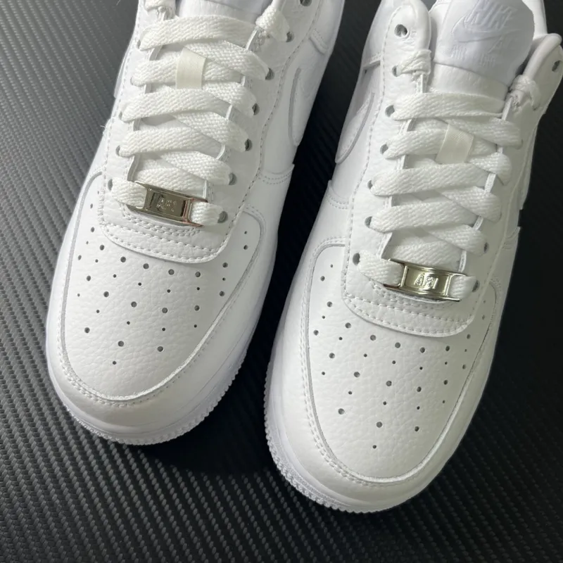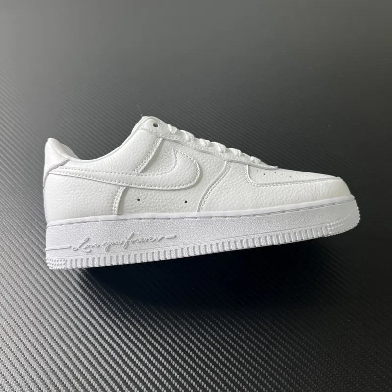O Nike Air Force 1 Low “Drake NOCTA Certified Lover Boy” é a interpretação refinada de um ícone, assinada pelo rapper canadense Drake através de sua linha NOCTA. A silhueta mantém o formato clássico de 1982, mas aposta em um visual completamente clean: o cabedal em couro premium texturizado, inteiramente branco, reforça a sensação de luxo e versatilidade. No solado, um detalhe discreto, mas poderoso — a inscrição “Love you forever” substitui o tradicional “Air” na entressola, uma homenagem à obra literária infantil favorita de Drake e um aceno pessoal à sua identidade. O acabamento monocromático se estende por cadarços, forro interno, entressola e solado, criando uma estética uniforme e sofisticada. Mais do que um tênis, é uma peça de coleção que combina a história de um clássico do streetwear com a assinatura artística de um dos maiores nomes da música contemporânea. Ideal para quem busca exclusividade sem abrir mão do estilo atemporal.