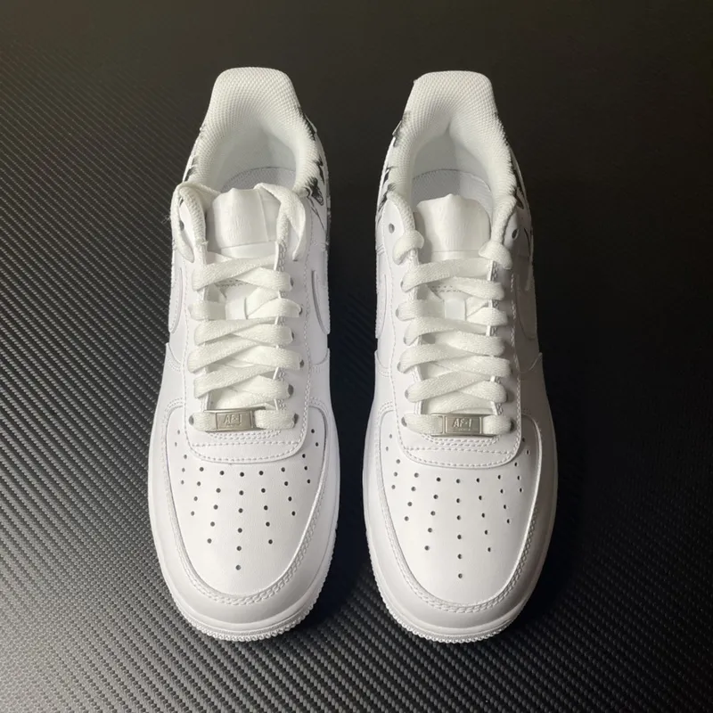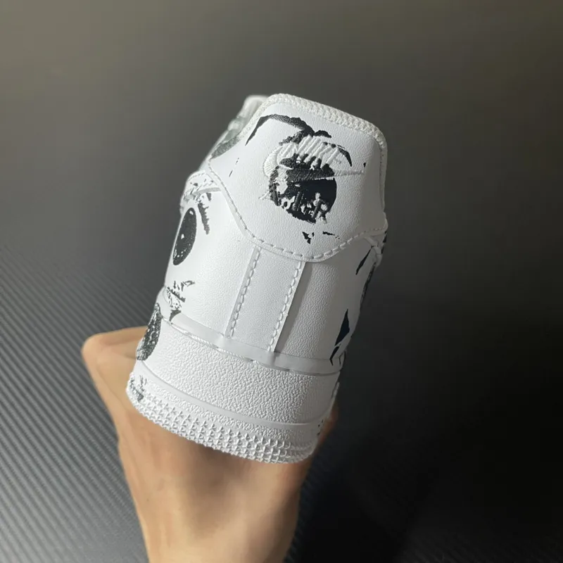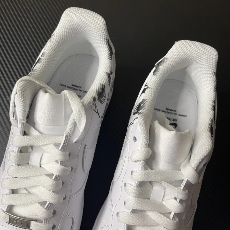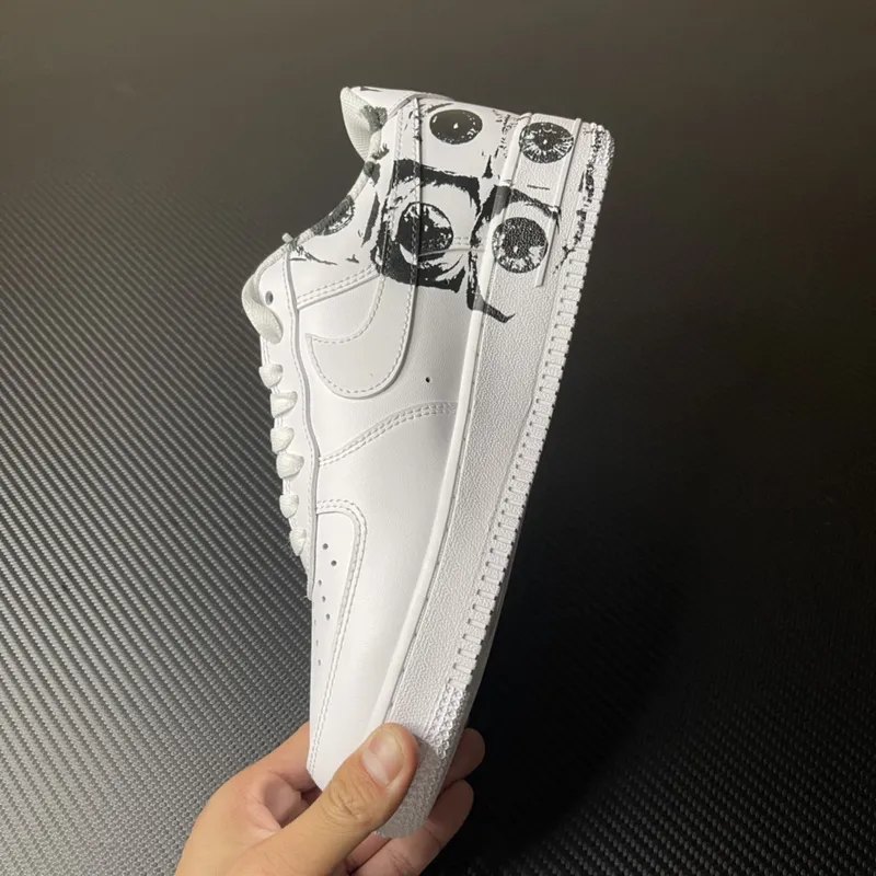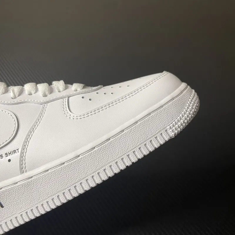 O Nike Air Force 1 Low “Supreme Comme des Garçons Shirt” é fruto de uma colaboração tripla de peso, unindo o clássico design do AF1 à ousadia visual da Comme des Garçons Shirt e à atitude street da Supreme. Construído sobre a base imaculada do Air Force 1 branco, o modelo se destaca pelo gráfico monocromático de olhos na parte traseira, trazendo um toque experimental e provocador. O cabedal em couro premium garante durabilidade e acabamento impecável, enquanto a entressola tradicional com tecnologia Air preserva o conforto lendário do modelo. O logotipo “COMME des GARÇONS SHIRT” e “SUPREME” discretamente impressos na lateral funcionam como selo de autenticidade para colecionadores e amantes de colaborações raras. O resultado é um sneaker que transcende tendências, combinando a pureza do branco com uma intervenção artística marcante — perfeito para quem vê moda como expressão cultural.