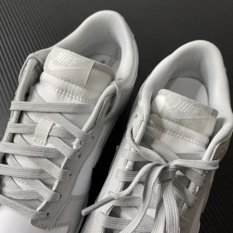 O Nike Dunk Low “Gray Fog” é a definição de versatilidade e estilo discreto, combinando perfeitamente com qualquer composição, seja para o dia a dia ou para ocasiões mais elaboradas. Lançado como parte da consagrada linha Dunk, o modelo mantém a silhueta clássica que conquistou tanto skatistas quanto amantes da moda urbana, mas com uma paleta de cores que privilegia a elegância minimalista. Seu cabedal é confeccionado inteiramente em couro de alta qualidade, com a base em branco puro contrastando harmoniosamente com sobreposições no tom “Gray Fog”, um cinza fosco que transmite sobriedade e sofisticação. O design é complementado pelo Swoosh lateral na mesma tonalidade, reforçando a estética monocromática e clean. A entressola branca oferece um visual equilibrado, enquanto o solado de borracha cinza garante tração e durabilidade para uso diário. Internamente, o tênis apresenta forro acolchoado que proporciona ajuste confortável, aliado à palmilha macia que absorve o impacto a cada passo. Essa combinação faz do modelo não apenas uma peça estilosa, mas também funcional, unindo moda e conforto de forma impecável. Seja com jeans, calças de alfaiataria ou até mesmo shorts, o Nike Dunk Low “Gray Fog” se adapta facilmente, tornando-se um curinga no guarda-roupa de quem valoriza qualidade, design e discrição. Uma escolha certeira para quem quer um clássico que nunca sai de moda.