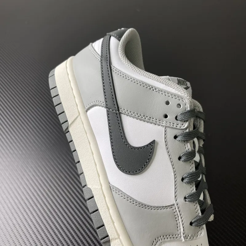 O Nike Dunk Low “Light Smoke Grey” combina simplicidade e impacto visual em uma paleta de cores neutras que elevam qualquer look. Seu design versátil é perfeito para quem busca um sneaker discreto, mas com forte identidade. O cabedal em couro branco serve como base limpa e elegante, enquanto as sobreposições em cinza claro trazem equilíbrio visual. O Swoosh e o calcanhar em cinza escuro criam um contraste preciso, reforçando a silhueta icônica e dando mais profundidade ao design. A entressola off-white adiciona um toque vintage, e o solado em cinza escuro complementa a harmonia das cores, garantindo tração e durabilidade. Este modelo é a fusão ideal entre minimalismo e atitude, tornando-se uma peça-chave para qualquer coleção.
