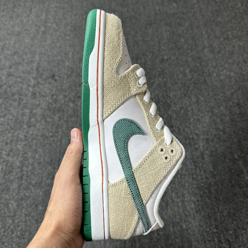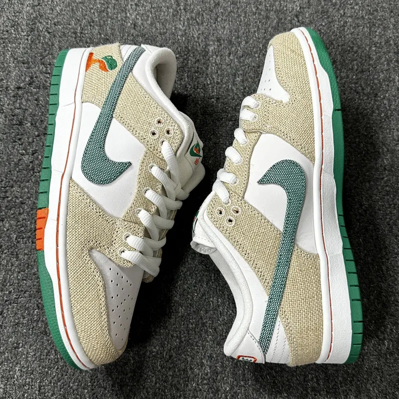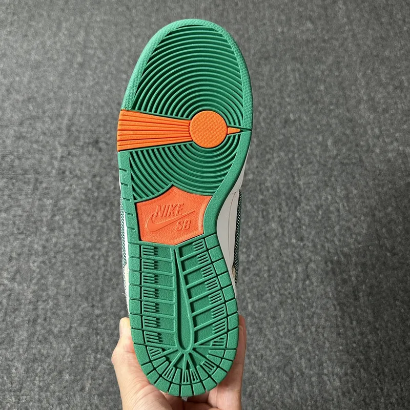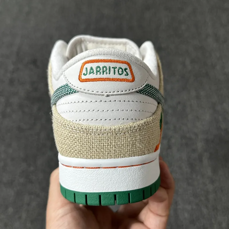 O Nike SB Dunk Low “Jarritos” é uma celebração vibrante que une o universo do skate à essência refrescante da icônica marca mexicana de refrigerantes. Inspirado nos sabores e na energia única da Jarritos, o modelo combina couro branco premium com sobreposições em lona bege, que podem ser desgastadas para revelar um tom laranja por baixo, adicionando um toque interativo e exclusivo. O Swoosh verde texturizado e os detalhes em laranja remetem à identidade visual da marca, enquanto a sola verde com entressola branca e costuras contrastantes garante durabilidade e tração para qualquer rolê. O logo “Jarritos” bordado no calcanhar e o grafismo especial na língua selam a colaboração com autenticidade. Mais do que um tênis, o SB Dunk Low Jarritos é uma peça que mistura design criativo, cultura de rua e a tradição de um clássico sabor latino. Perfeito para quem busca se destacar com estilo, história e um toque de irreverência.