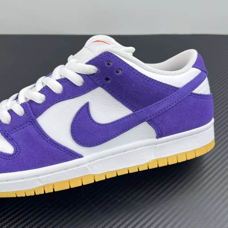 O Nike SB Dunk Low Pro ISO Orange Label “Court Purple” combina a essência do skate com um visual marcante, trazendo materiais premium e um esquema de cores ousado. Com base em couro branco liso e sobreposições em camurça roxa intensa, o modelo equilibra contraste e personalidade, enquanto o Swoosh lateral e os acabamentos mantêm a identidade da linha SB. A entressola branca reforça o visual limpo, contrastando com o solado de borracha natural (gum sole), que entrega tração e resistência para sessões de skate e uso diário. Detalhes laranja na língua e palmilha, característicos da Orange Label, selam a exclusividade do par. Mais do que um sneaker, o “Court Purple” é uma fusão entre performance e estilo, perfeito para quem busca um tênis que se destaca nas pistas e nas ruas, com qualidade, conforto e personalidade incomparáveis.