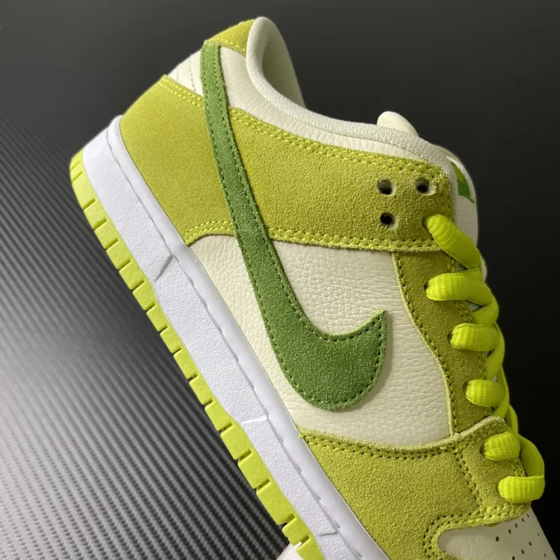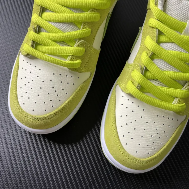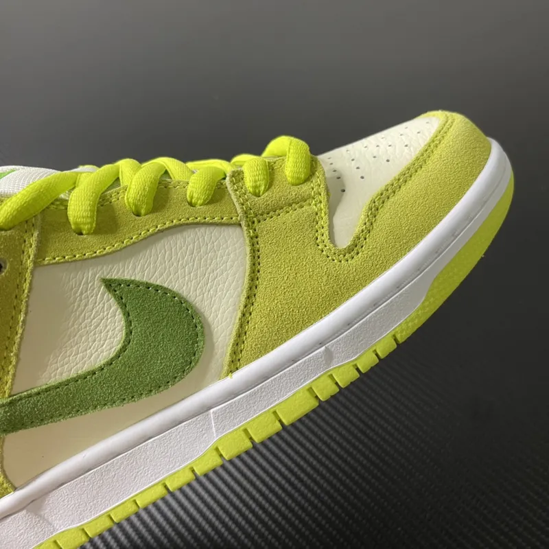 O Nike SB Dunk Low Pro “Sour Apple” é a tradução perfeita de energia, frescor e ousadia em forma de sneaker. Inspirado na acidez vibrante da maçã verde, este modelo combina tons marcantes de verde-limão e verde maçã sobre uma base creme suave, criando um contraste irresistível e cheio de personalidade. O cabedal mistura couro premium com sobreposições em camurça texturizada, garantindo durabilidade e uma estética rica em detalhes para o uso dentro e fora do skate. Os cadarços e a sola em verde cítrico dão continuidade à proposta visual, reforçando a identidade única do par. O Swoosh lateral em tom de verde maçã acrescenta equilíbrio à composição, enquanto a entressola branca cria uma transição limpa entre as cores vivas e a base do calçado. A sola de borracha aderente garante tração e estabilidade em cada manobra, mantendo o DNA técnico que os skatistas exigem. Mais do que um tênis, o Nike SB Dunk Low Pro “Sour Apple” é um manifesto de atitude: ideal para quem quer se destacar, transmitir energia positiva e carregar um toque de irreverência a cada passo. Uma escolha refrescante para qualquer coleção.